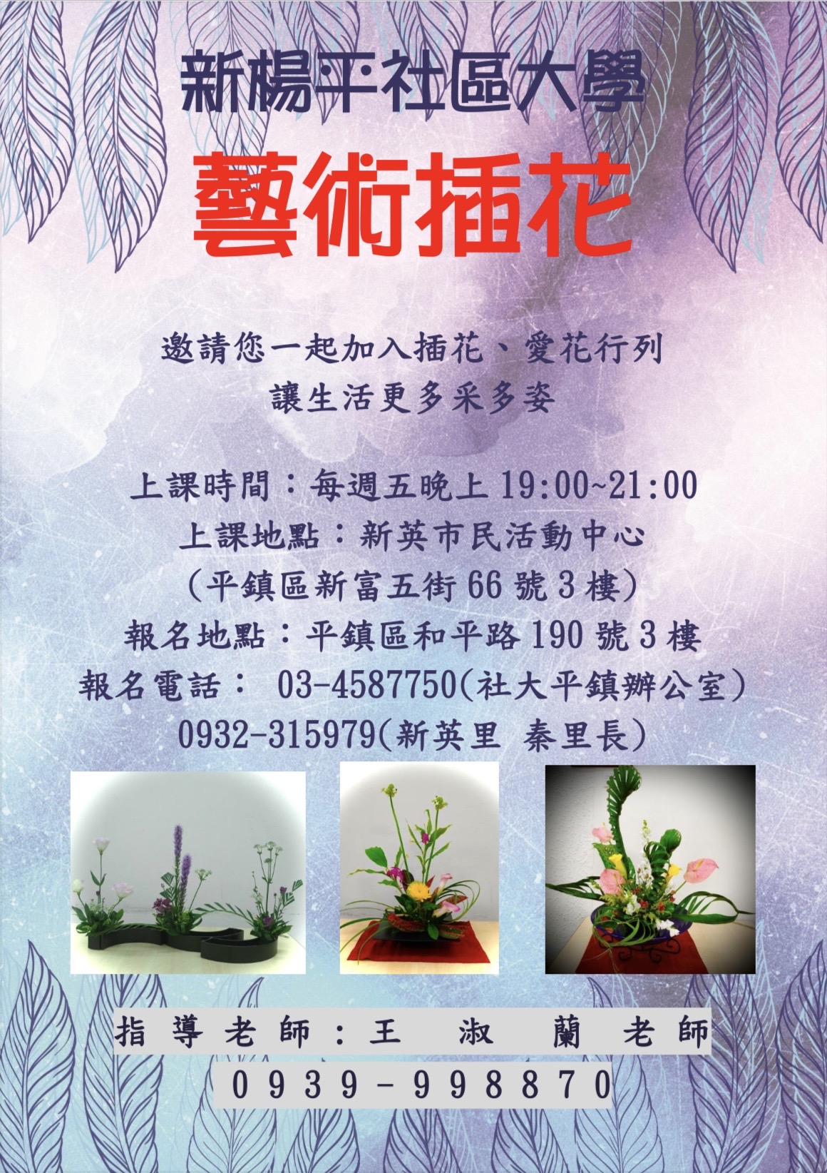 ☘️邀請您 一起加入插花 、 爱花行列☘️讓生活更多多姿 🕖上課時間 : 每週五 晚上19:00-21:00🏢繼續閱讀 “新楊平社區大學藝術插花"