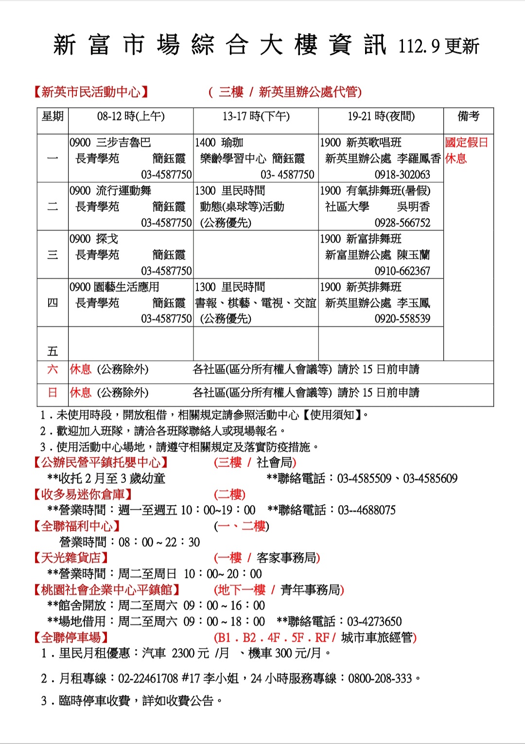 112年9月新富市場綜合大樓資訊